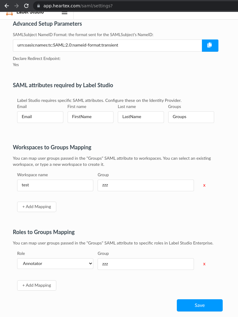 You can find LSE SAML SSO settings on the Organization page >> SAML SSO. You are able to map user roles and workspaces with Groups attribute.