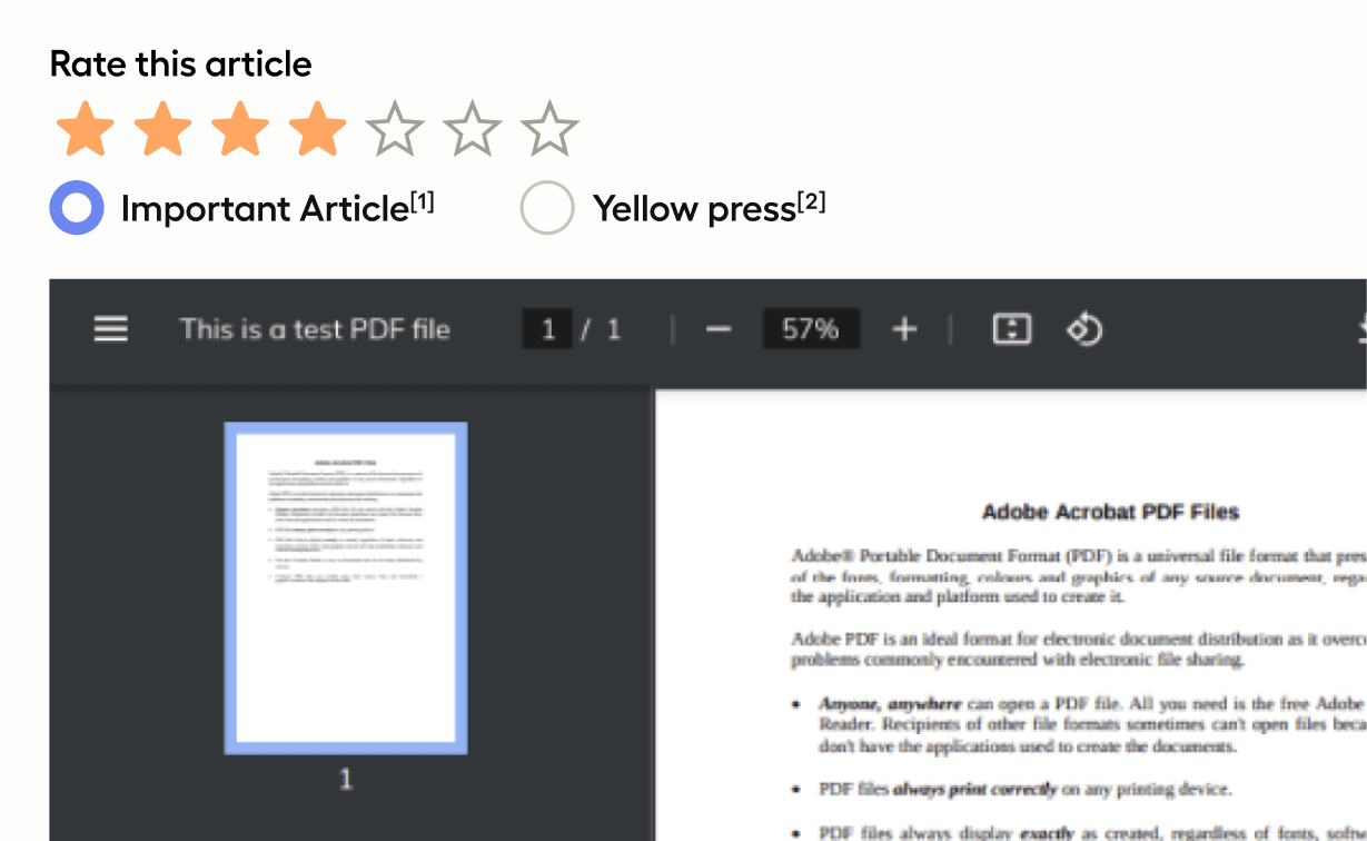If you want to perform PDF classification, use this template. This template prompts an annotator to rate a PDF on a 10-star scale, then categorize it.
